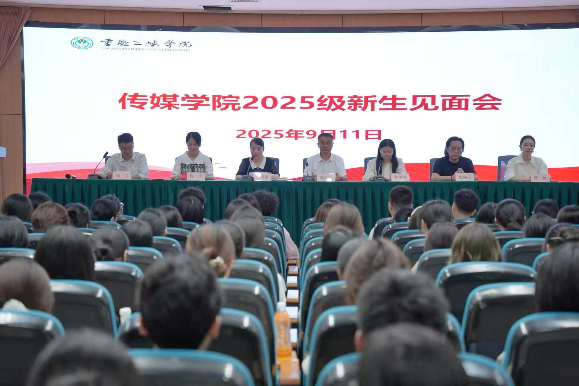 9月11日上午,传媒学院2025级新生见面会在沙龙校区综合楼报告厅举行。学院党政班子全体成员、教师代表、新生辅导员与2025级全体新生齐聚一堂,共同开启传媒人生的崭新篇章。本次见面会由学院副书记、副院长张春蕾主持。