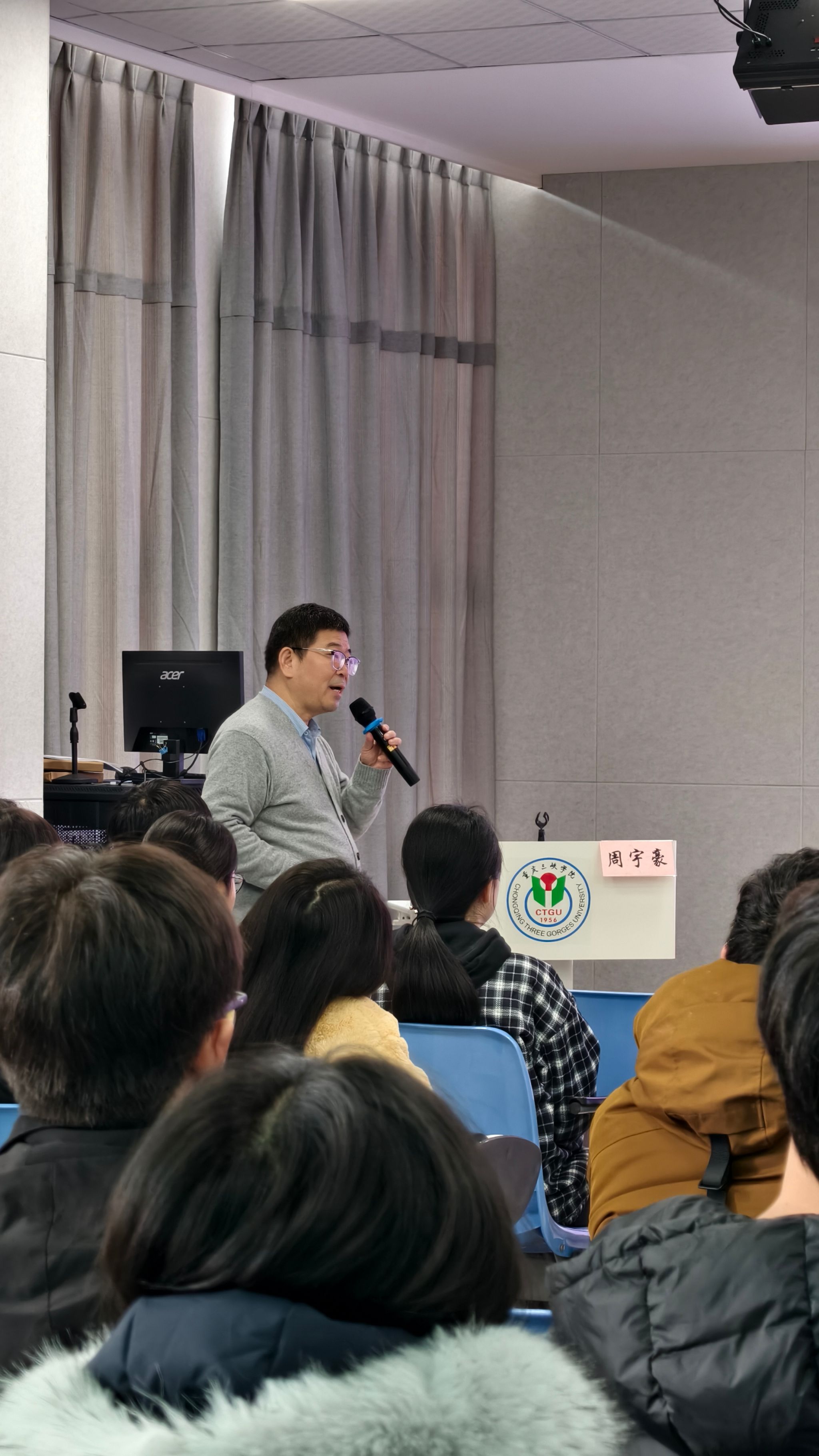 11月21日,重庆三峡学院传媒学院举办“科研育人能力提升”研究生学术沙龙,特邀上海大学新闻传播学院博士生导师周宇豪教授担任主讲。沙龙围绕学术能力培养与科研方法展开,由学院硕士生导师陈振华主持,2024级、2025级30余名研究生参加。